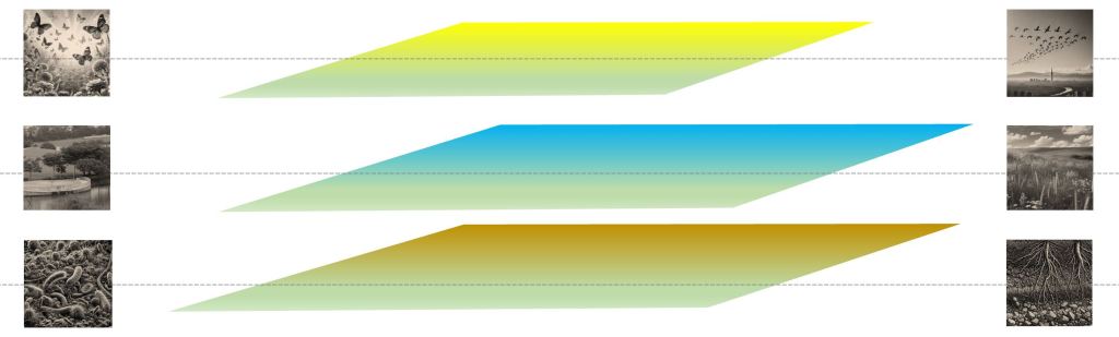 Connectivity of Green Infrastructure often implies the connection from one green space to the next, but it has another often-forgotten dimension—the vertical layering. Even within the same space, there are three critical layers: above-ground, ground level, and underground.